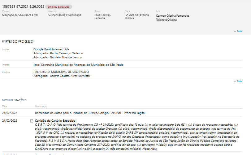 Consulta de andamento processual