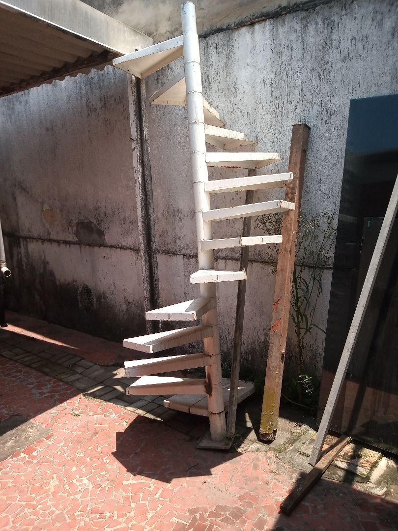 Escada caracol, em estrutura metálica, eixo 10cm com degrau de 50 cm , vão livre de 2,80m branco