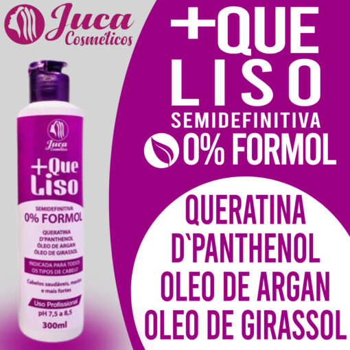 A Máscara Capilar Repositora +Que Liso Foi formulada com Queratina que auxilia na reposição da fibra capilar, Óleo de Argan que doa brilho e maciez, indicada para todos os tipos de cabelos, controlando o volume, melhora a estrutura do fio, proporcionando aspecto saudável e natural aos cabelos.