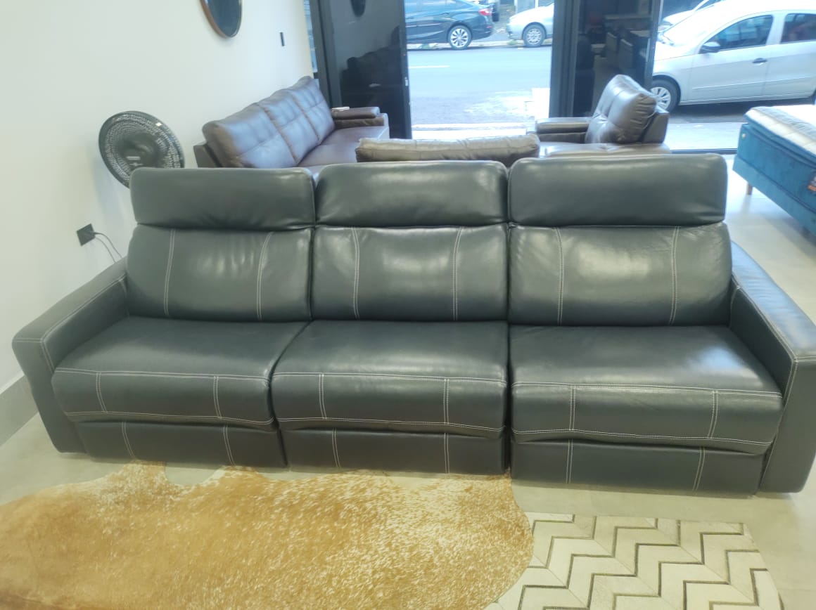 Sofá em couro legítimo 03 lugares modulados elétrico. Produto novo, sem uso. Peça única com 50% de desconto.